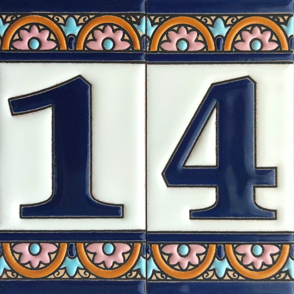 Huisnummer op tegel, zoals je dat veel in Spanje, Portugal, en Italië tegenkomt. Met de handgemaakt en met bijzonder sprekende kleuren.