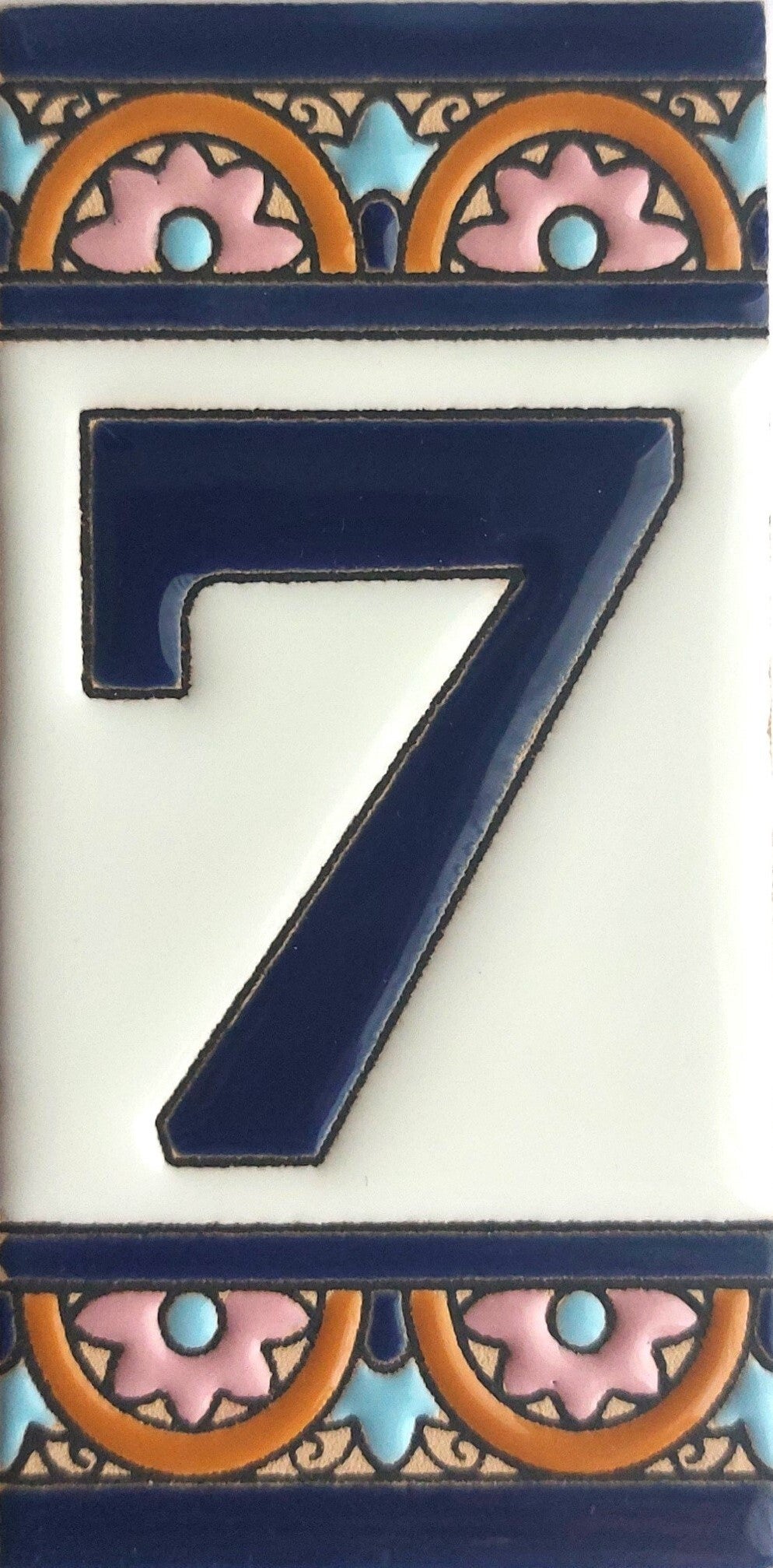 Huisnummer op tegel, zoals je dat veel in Spanje, Portugal, en Italië tegenkomt. Met de handgemaakt en met bijzonder sprekende kleuren.