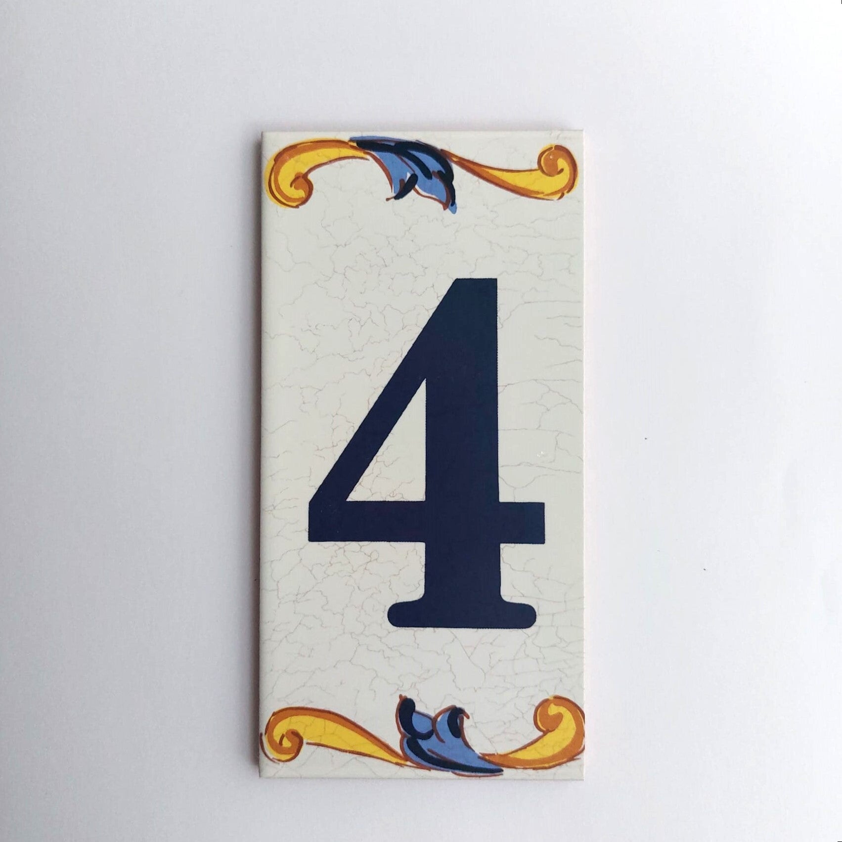 Huisnummer op tegel, zoals je dat veel in Spanje, Portugal, en Italië tegenkomt. Met de handgemaakt en met bijzonder sprekende kleuren.