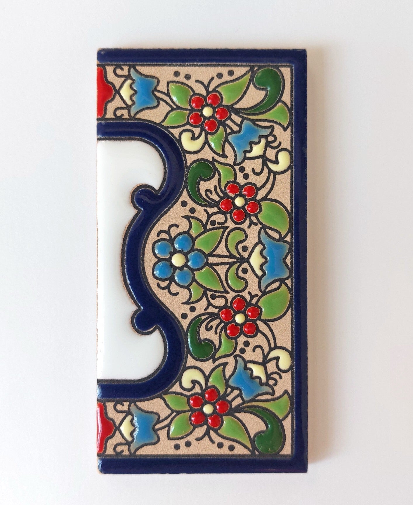Huisnummer op tegel, zoals je dat veel in Spanje, Portugal, en Italië tegenkomt. Met de handgemaakt en met bijzonder sprekende kleuren.
