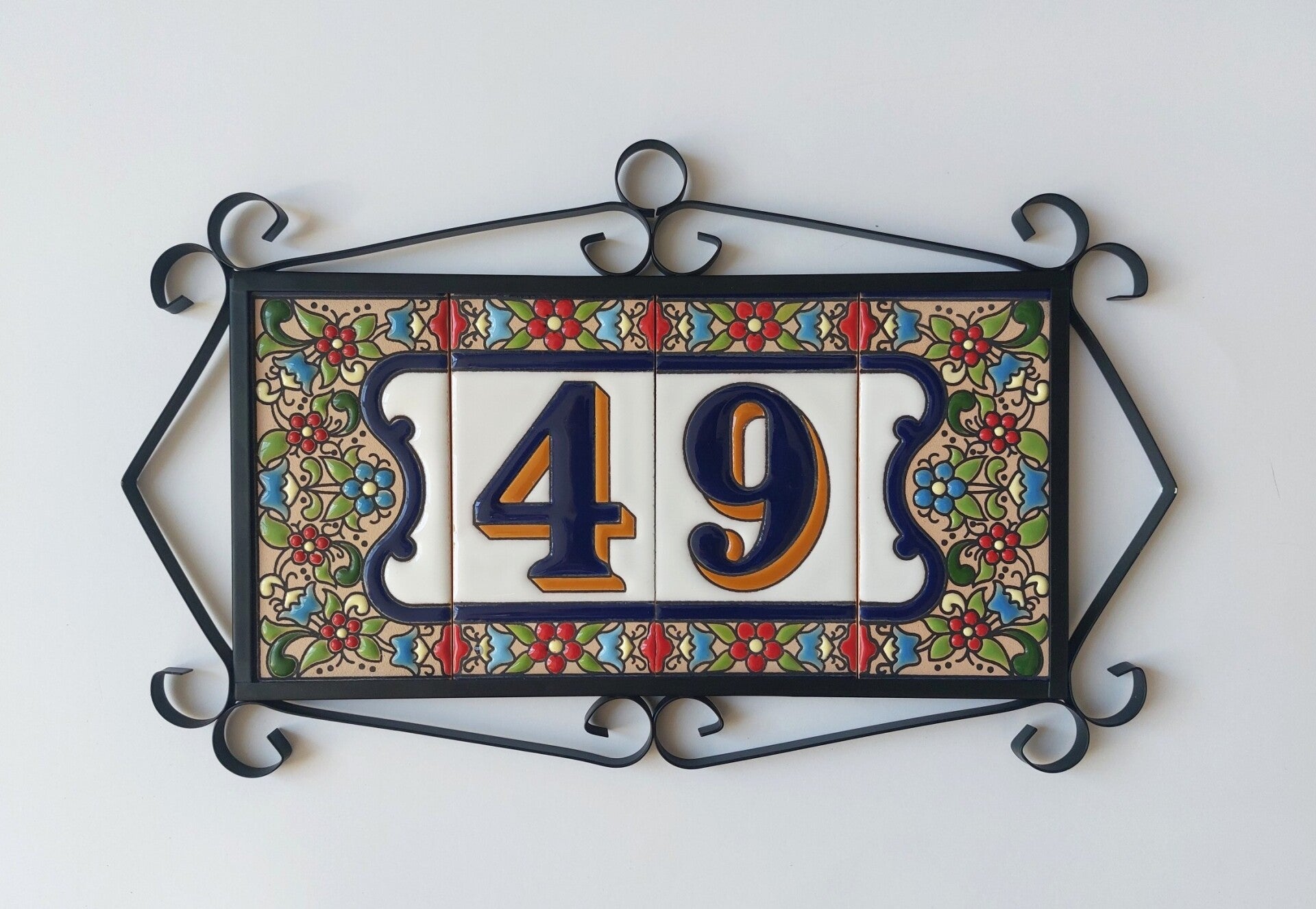 Huisnummer op tegel, zoals je dat veel in Spanje, Portugal, en Italië tegenkomt. Met de handgemaakt en met bijzonder sprekende kleuren.