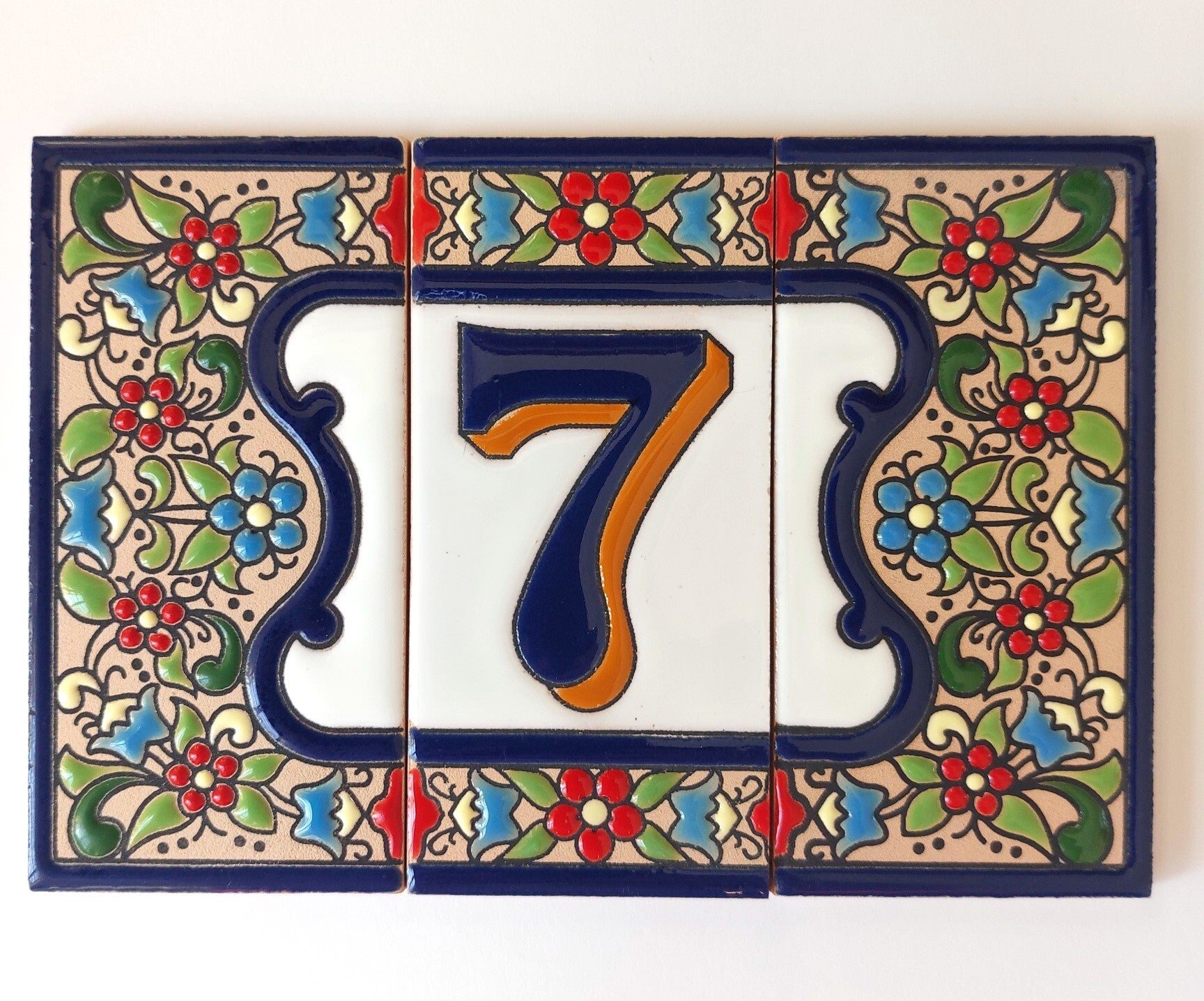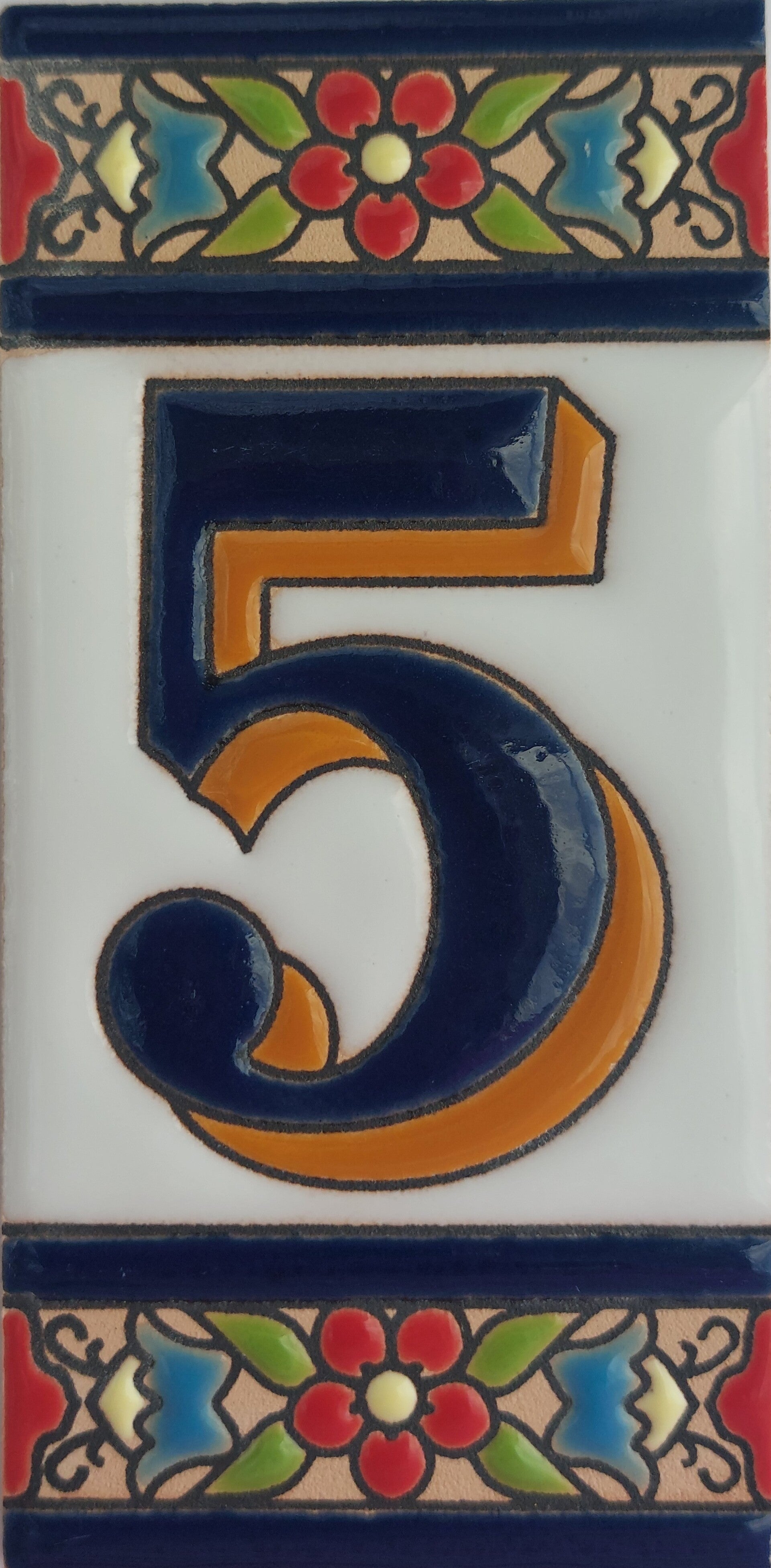 Huisnummer op tegel, zoals je dat veel in Spanje, Portugal, en Italië tegenkomt. Met de handgemaakt en met bijzonder sprekende kleuren.
