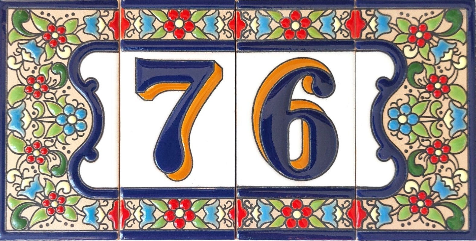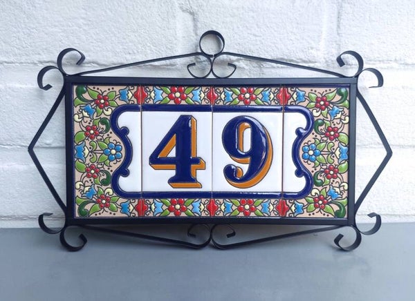 Huisnummer op tegel, zoals je dat veel in Spanje, Portugal, en Italië tegenkomt. Met de handgemaakt en met bijzonder sprekende kleuren.