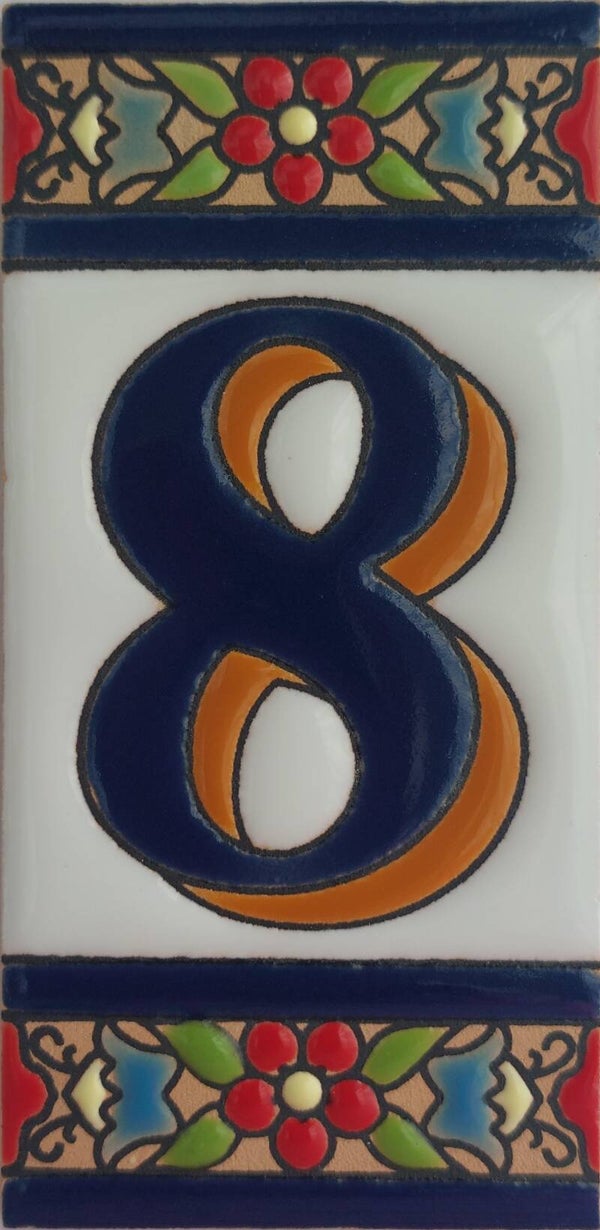 Huisnummer op tegel, zoals je dat veel in Spanje, Portugal, en Italië tegenkomt. Met de handgemaakt en met bijzonder sprekende kleuren.