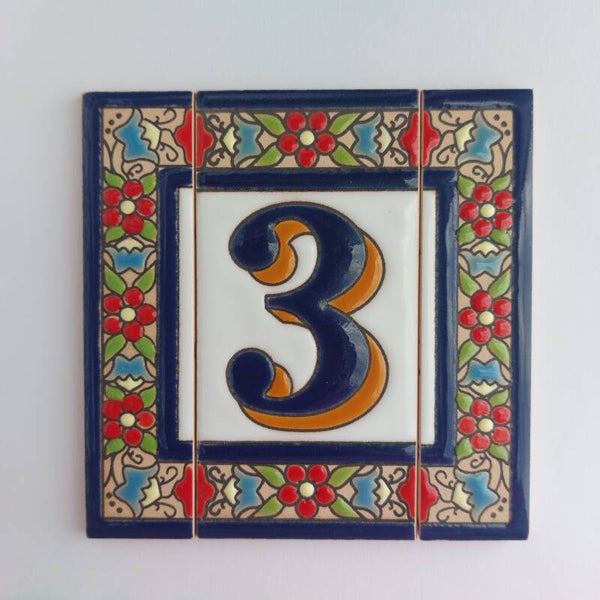 Huisnummer op tegel, zoals je dat veel in Spanje, Portugal, en Italië tegenkomt. Met de handgemaakt en met bijzonder sprekende kleuren.
