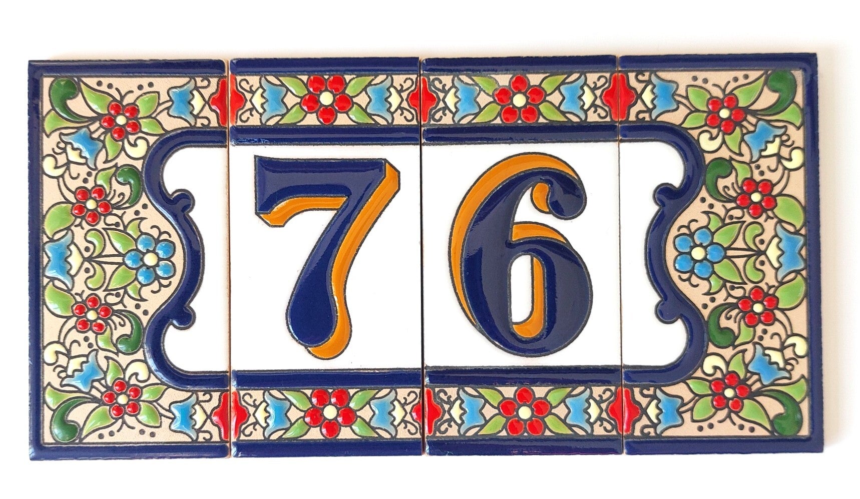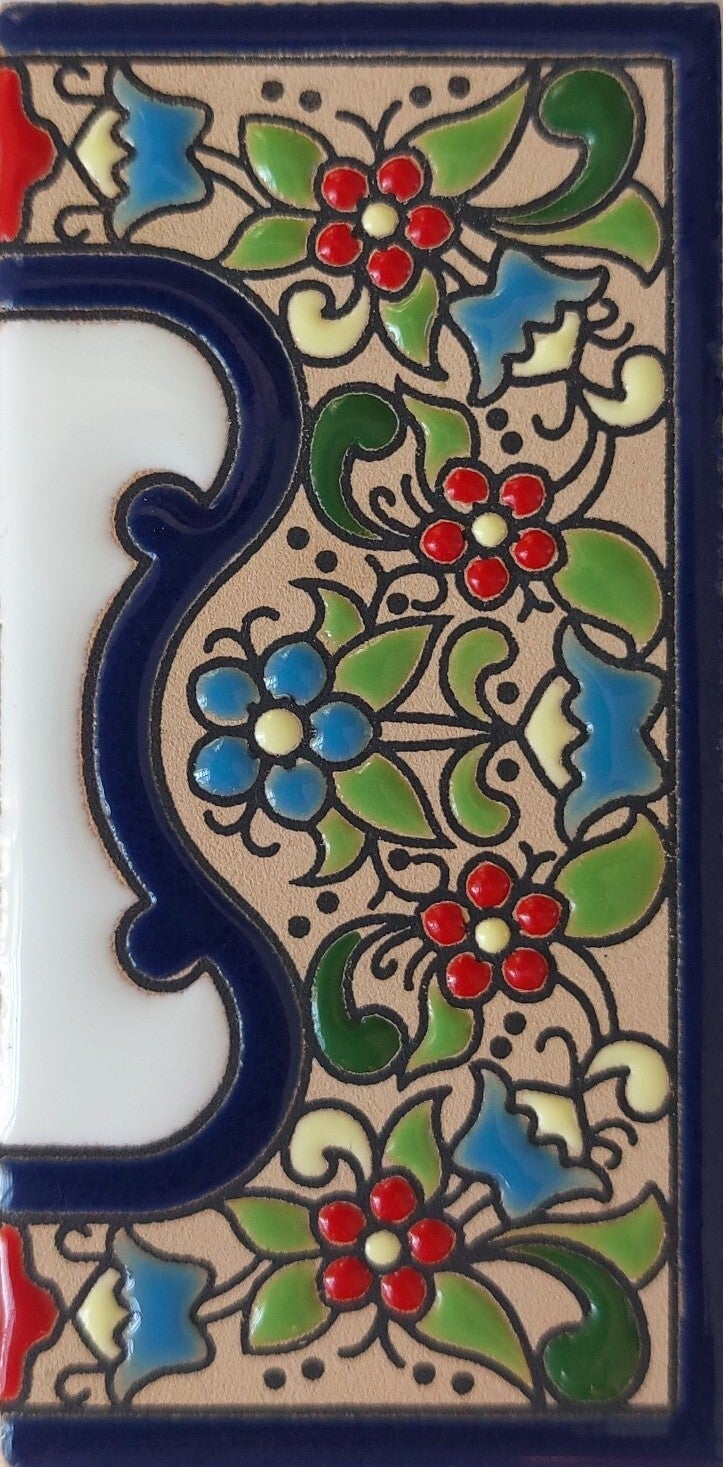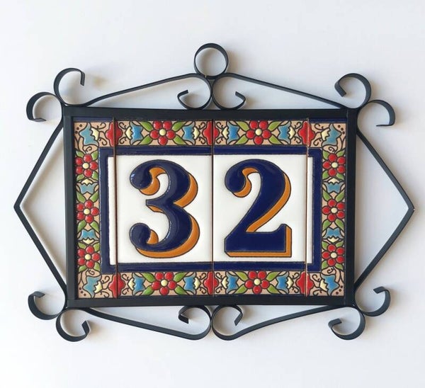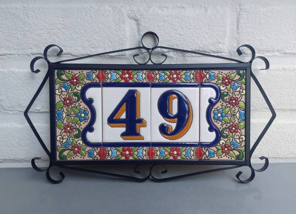 Huisnummer op tegel, zoals je dat veel in Spanje, Portugal, en Italië tegenkomt. Met de handgemaakt en met bijzonder sprekende kleuren.