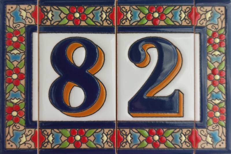 Huisnummer op tegel, zoals je dat veel in Spanje, Portugal, en Italië tegenkomt. Met de handgemaakt en met bijzonder sprekende kleuren.