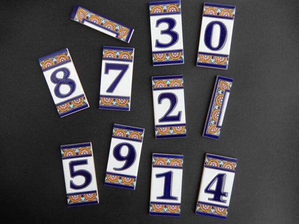 Huisnummer op tegel, zoals je dat veel in Spanje, Portugal, en Italië tegenkomt. Met de handgemaakt en met bijzonder sprekende kleuren.