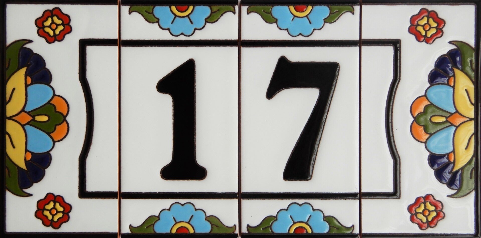 Huisnummer op tegel, zoals je dat veel in Spanje, Portugal, en Italië tegenkomt. Met de handgemaakt en met bijzonder sprekende kleuren.