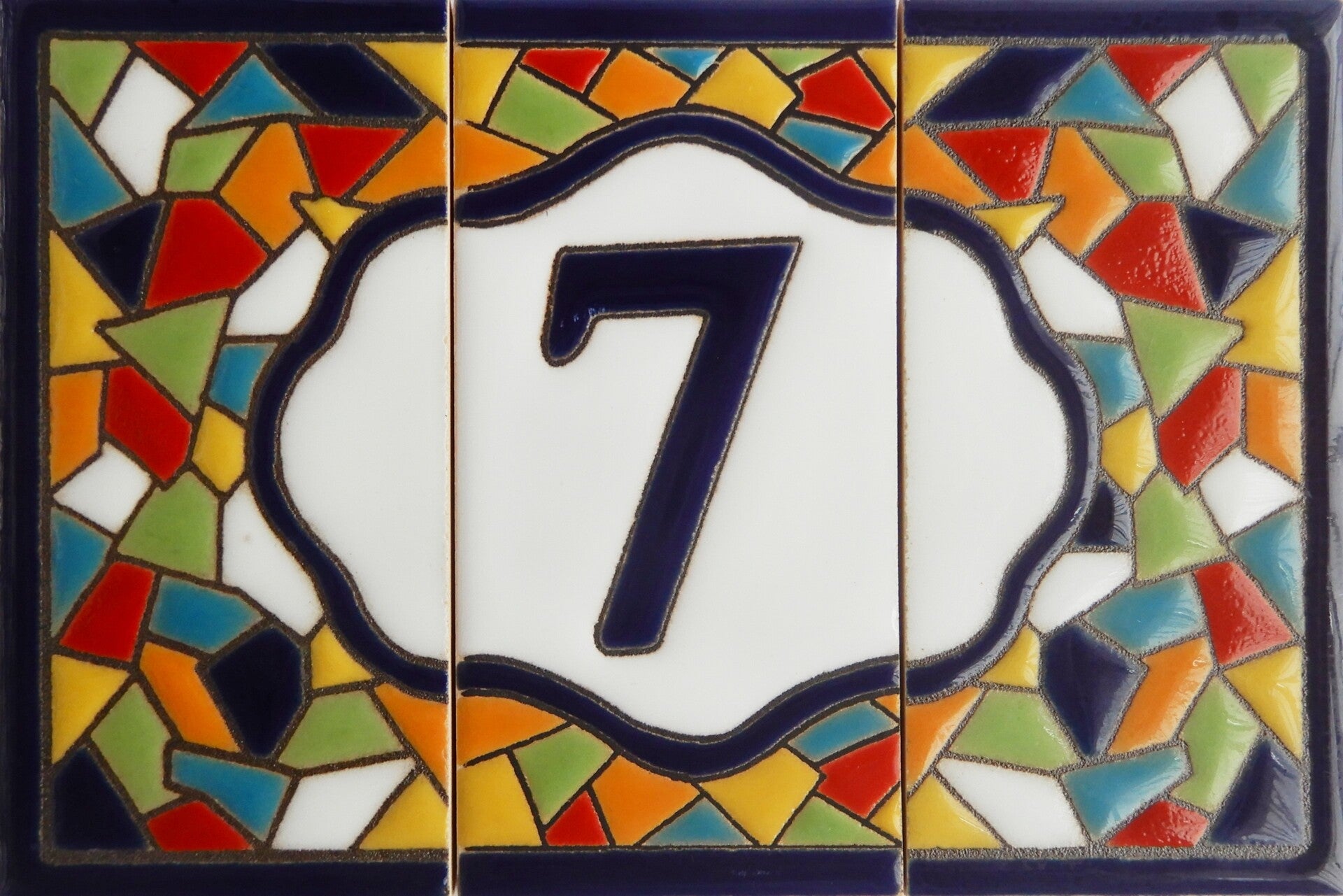 Huisnummer op tegel, zoals je dat veel in Spanje, Portugal, en Italië tegenkomt. Met de handgemaakt en met bijzonder sprekende kleuren.