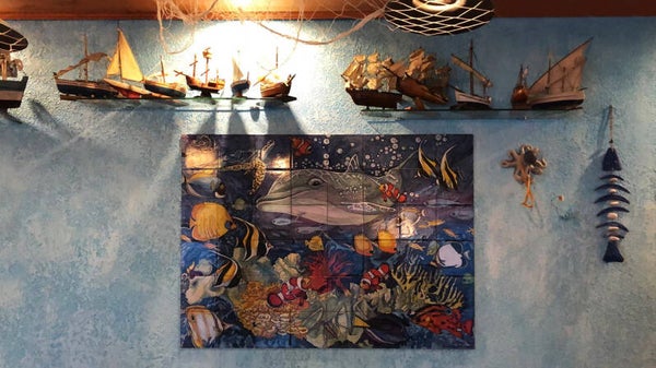 Tegeltableau: Onderwater met dolfijn - 150 x 105 cm